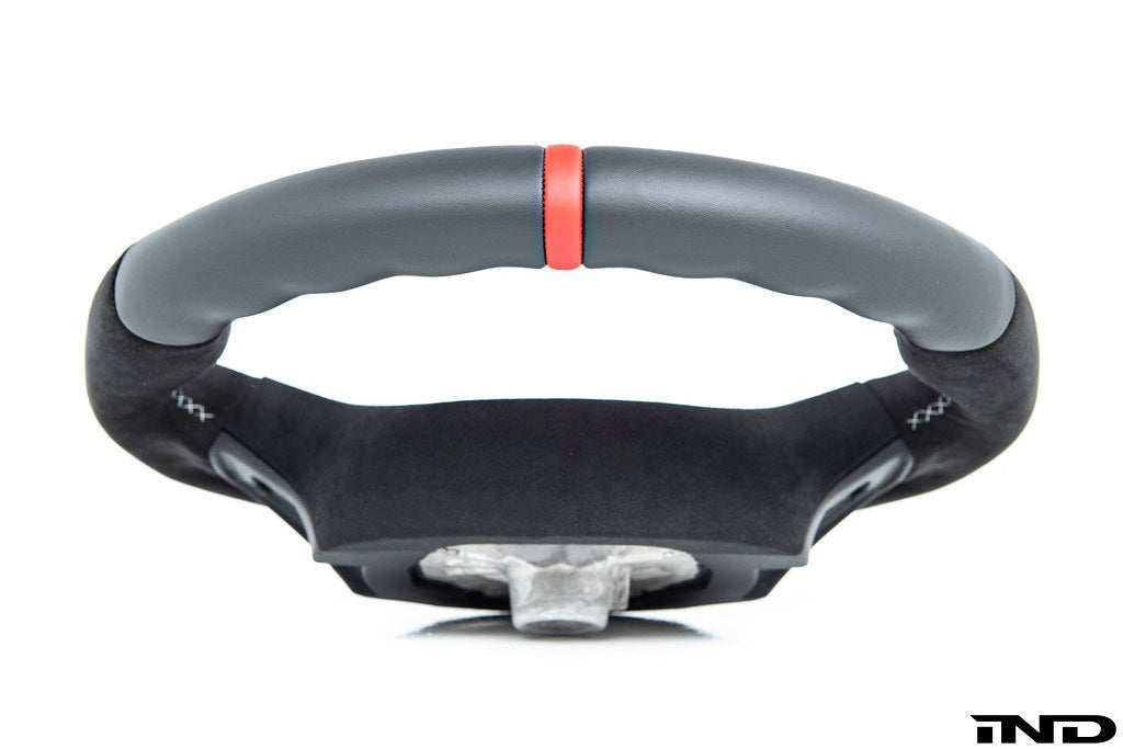 The M Performance steering wheel is characterized by the use of the Alcantara, common in motor racing not least due to its grip properties. Therefore, the pronounced Alcantara gripping area with large thumb rests offers the driver maximum grip and a highly direct steering feel. Further motorsport-inspired features include the red center marker in the 12 o’clock position and a handstitched seam finished in silver grey. To complement the Alcantara and Leather covered steering wheel surface, the optional M Performance steering wheel trims in Carbon/Alcantara and Carbon/Leather each with M Performance lettering are available to suit your preferred style. Contact our sales team for custom upholstery options.