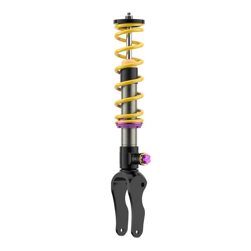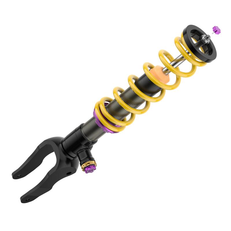 KW V4 coilovers are a combination of our innovative, race proven technology, as well as decades of experience tuning high end sports cars, super sedans and exotics such as the Audi R8, Audi RS6, BMW M5, Lamborghini Aventador LP 750-4 SV, Dodge Charger SRT Hellcat, Mercedes AMG GT and more. In addition to the individually adjustable ride height the KW V4 coilover kit allows an independent Adjustment -f the rebound damping as well as the low-speed and high-speed compression damping. Each KW V4 coilover kit is delivered with a vehicle-specific comfort setting and with the integrated Adjustment -controls the damping characteristics can be set quickly and intuitively transformed to an optimized performance setup. The 3-way adjustable high-performance dampers in the KW V4 coilover kits feature independent Adjustment -f the rebound damping utilizing patented TVR-A technology, as well as the low speed and high speed compression damping utilizing TVCLH-A technology. The KW V4 coilovers are based upon successful race technology utilized by multiple overall winners of the ADAC Zurich 24h Nurburgring race. The new KW V4 coilovers are exclusively developed for select high-performance vehicles, which benefit greatly from the KW suspension technology -o improve their driving dynamics.